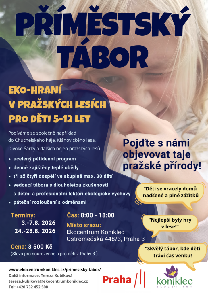 Chcete, aby si vaše dítě užilo týden plný kamarádů a her venku na vzduchu? Pojďte s námi objevovat a poznávat taje lesní přírody v rámci našeho příměstského tábora Eko-hraní v pražských lesích!